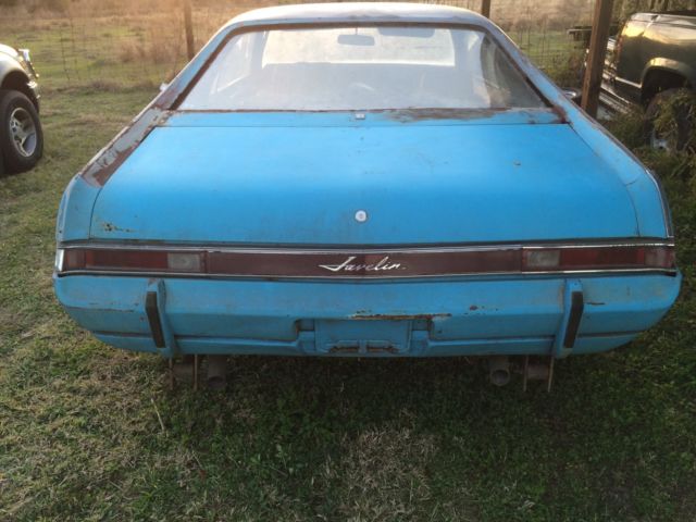Barn find car, it has been sitting obviously for years so will need to be 100% gone through. Yes it has rust, no it does not run, but it is a Big Bad Blue SST Javelin with a 390 Hurst 4 speed Mod Pak Package consisting of hood scoops (included) 140MPH Speedometer, 8000 rpm tachometer, twin grip differential (Posi Trac) rear-end and simulated side pipe rocker covers “with” factory platinum interior and plaid inserts!