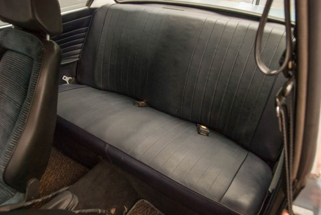 Inside, the Blue cloth Recaro front seats both look great with normal signs of wear. The rear seat are blue leatherette and in good condition. The blue door panels and carpet compliment the exterior of the car and look fantastic. The dash is in very good condition with only one small crack. This example is equipped factory Blaupunkt radio and Nardi Luisi wood steering wheel in very good condition, with no cracks and a functioning horn.