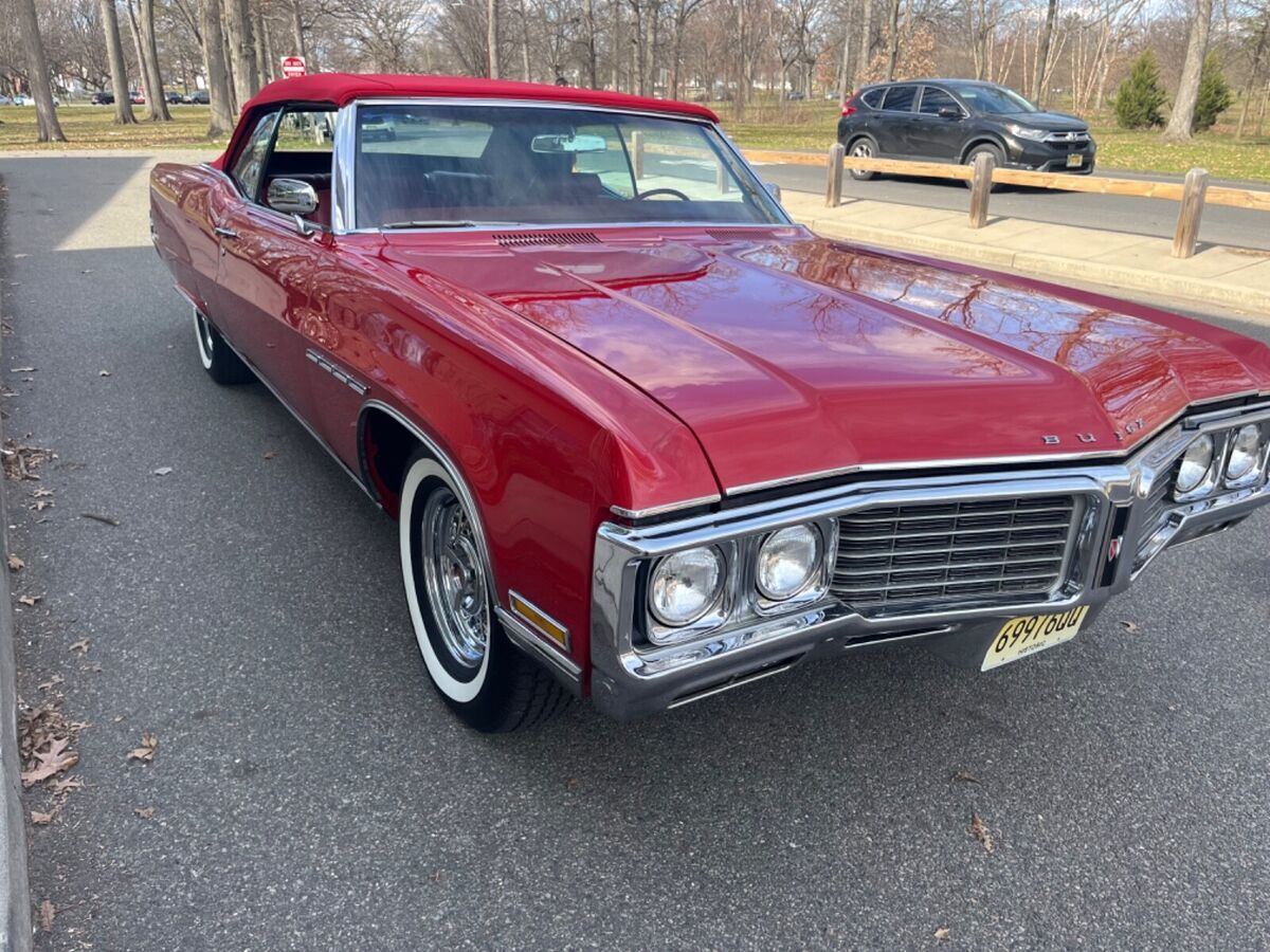 This 1970 Buick Electra is a classic beauty that is sure to turn heads. The exterior and interior are both a stunning shade of red, making this car truly stand out. With a body type of a convertible and seating for six, this Buick Electra is perfect for cruising around town or taking a road trip with friends and family. The car has a clean vehicle title and has been well-maintained, with only 57,856 miles on the odometer. The car has two doors and boasts a classic design that captures the essence of a bygone era. This Buick Electra is truly a treasure and a must-have for car enthusiasts. The paint is absolutely stunning with flake !! The interior is all original like new !! Brand new convertible top !! Brand new Kelsey Hayes wire wheels and brand new American classic tires all power options work including ice cold ac call 908 494-7644