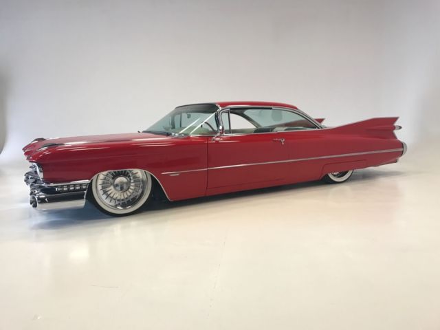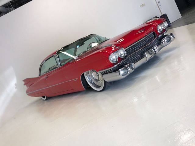 This 1959 cadillac coupe is a great driver with all modern day creature comforts like power windows, heat & A/C, Bluetooth stereo and air ride suspension. It has been re-chromed 3 years ago and recently finished the LS motor swap with tons of custom accessories.