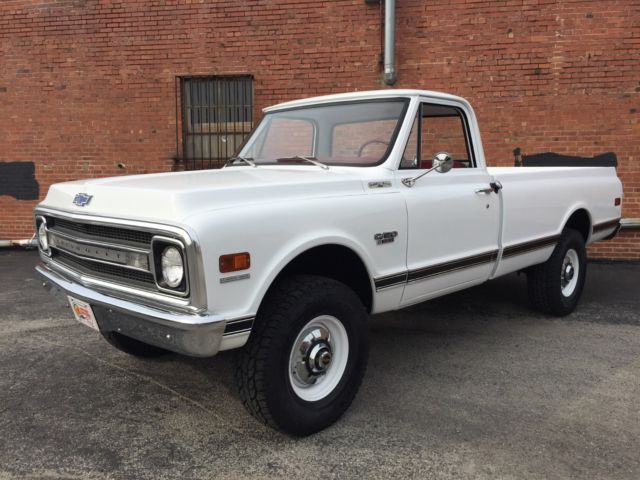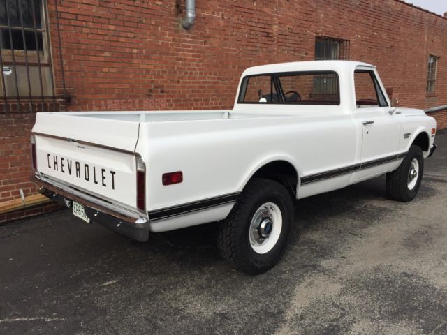 1969 Chevrolet K/20 3/4 ton 4x4. Factory WHITE with RED interior. This is a retired fire truck with only 15,728 original miles. It had a utility bed put on it when new and the fire department had the outside of the truck painted yellow.