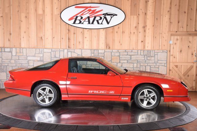 This muscle car has become a popular classic car with a spot on any collector's list of dream vehicles. After 30 years on the market, these limited productions of ONLY 2,497 units of the IROC-Z are officially classic cars. The first production Camaro IROC-Z was an options package for the Camaro Z/28, but with enhanced handling and performance. The International Race of Champions (IROC) has a 305 cubic-inch LB9 V8 engine with Tuned Port Injection that outputs 215hp and 275 lb-ft of torque. This car was purchased new in Florida by the gentleman we purchased the vehicle from. It was transported up to Ohio from Florida and had been in storage in a garage for many years. The car starts, blows no smoke, and the transmission engages and shifts perfectly. Finished in Red over Gray cloth, this 5.0L V8 comes equipped with fantastic options, including: 4-Speed Automatic Transmission, Extended Range Sound System (ERS), Power Windows & Mirrors, Removable T-Top, AM-FM Radio with Cassette, Cruise Control, Power Rear Hatch, Limited Slip Rear Differential, Delco-Bilstein Shocks, 16 Inch Aluminum Five-Spoke Wheels and much more. All in all, there aren't many 'classic' American cars on the road today with a nameplate that has been around for 32 years and has retained substantially same shape, style and mission in life since the beginning. This is your opportunity to buy a rare piece of American history that will NOT disappoint! Call the Toy Barn of Dublin today for more details on this ultra-low 5K mile specimen, 614.799.5000.Similar vehicles