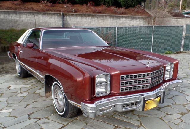Up for sale is one super clean and stock 1976 Chevy Monte CarloLandau. The car has 47k Original Miles and shows it. The car has two owners and both kept the car garaged. The first owner was a lady that bought it brand new in Utah. She was the owner of the car from 1976-2012 (I never met her,is now dead). She was a correctional officer who gently used the car. She moved to Portland Oregon and always garaged the car. My friend who was her neighbor and care giver ended up buying the car 6years ago. He also garaged it putting about 500 miles on per year. The car is still in his name. When he bought it he put new top on it and new water pump. The car is almost completely rust free. The only rust I can find is surface rust on parts on the undercarriage. Its just on metal brackets under the car nothing extreme. All panels and floors are completely rust free and dry. The car looks like it was under coated when it was first bought. I added many photos for you to see. The interior is almost perfect. The body is the same and really straight with just some very minor door dings. I could not really find any but I do not want to say they are not there incase one pops up. Oh ya there is one scratch near the wheel lip and one of the plastic filler pieces is cracked like always on these GM cars. They run about $75 a piece online. I can touch up the scratch for the buyer if they want. I did not want to do touch up incase the next owner wanted it untouched. The paint is factory and looks great. I do know that the lady got into a little fender bender going around the little traffic circle in the neighborhood and the fender and headlight bezel was painted but the color match is perfect and this happen a long time ago. You can not see any color difference at all. Who ever repaired it did a perfect job. The only reason I know this is because I saw a little green paint on the inside of the fender and brought it up to the owner and he told me about it, but it happen so long ago that the guy forgot about it. The owner of the car now is the nicest guy ever and is very honest. He was a medical helicopter pilot in Vietnam who was shot down 22 times and is just one of the nicest guys I have ever met. I know that has nothing to do with the car but for me it does. It tells me how accurate the history really is on the car. Anyhow Everything works great on the car including the A/C. The following has been done in December 2017: New tires,New battery,New hoses,and Oil change. The car just floats down on the freeway. I was doing 75-80mph and it felt like I was doing 40mph. I was driving with one hand even. All the lights work,brights work,turn signals,cruise control works,everything works except the side mirror wont adjust when you use the knob. Im trying to be as clear as possible so there are no surprises. Who ever gets this car will be getting a very nice car ad can drive it cross country today. This car is what any car collector is looking for. Its factory paint and factory interior with low actual miles. Just all around a great car.If you need help locating a transporter I have one I work with.
