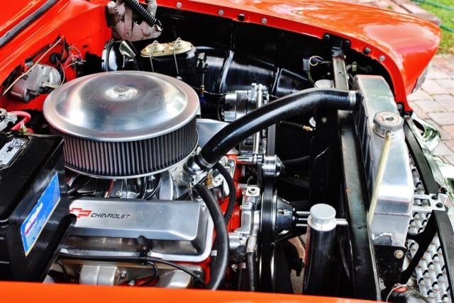GM Small Block 350 EngineTurbo 350 Automatic TransmissionRoman Red Exterior over Red & White InteriorPower SteeringFront Power Disc BrakesBorla ExhaustFactory Power TopUpdated Dakota Digital Dash and ClockStock ChassisLowered 2" w/Dropped Spindles in the FrontUpdated Headlights and LED Taillights w/Third Brake LightVery Nice Chrome and Stainless w/Accessory Front/Rear Bumper GuardsRuns, Drives and Handles Excellent