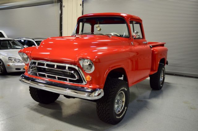 GO BIG RED ! 1957 BIG BACK WINDOW 3100 SHORT BOX 4x4 Stepside RESTORED