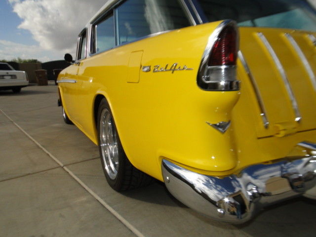 1955 cheverolet nomad frame off restored,with over $200,000 spent,POSSIBLY THE FINEST IN THE COUNTRY,finished in pale yellow with white top,i will discribe the car and build as close as possible i may miss some thing that was done,first purchase of rust free 55 $32000,ART MORRISON FRAME SET UP FOR INDEPENDENT $12000 KUGEL FRONT RACK AND PINION $5400 REAR KUGAL 9 in with 350 gears 4 BAR DUAL QA! COIL OVER INDEPENDENT $21300 FRONT WILWOOD STAGE 2 DISC BRAKES WITH CALIPERS & QA1 COIL OVER SHOCKS $2600 ELECTRIC BRAKE BOOSTER $990 CUSTOM REAR ALUMINUM REAR END COVER $600 FRAME THEN SMOTHED AND FILLED THEN POWDER COATED,$2400 FRONT CUSTOM 17 IN BOYD CODDINGTON WHEELS $1600 FRONT TIRES 235-45-17 NITTO $300 REAR MATCHING 18X9.5 RIMS $2200 TIRES 295-45-18 $550 29 GALLON CUSTOM GAS TANK IN s/s $800 CUSTOM S/S STRAPS $400 SMOOTHED REAR TIRE WELL $1500 3 1/2 IN s/s EXHAUST WITH ELECTRIC CUT OUTS $3100 BORLA S/S MUFFLERS $600 NEW FRONT FLOOR BOARDS MADE FOR 5 SPEED TEMTREC TRANSMISSION,CLASSIC INSTRUMENTS & CLOCK $1000 POWER FRONT WINDOWS $800 REMOTE POWER DOOR LOCKS WITH VIPER ALARM $700 ALL S/S POLISHED $3600 NEW CHROME PLATED BRASS HEAD LIGHT TRIM AND SIDE SPEARS $5500 HALOGEN HEAD LIGHTS $320,LED SIGNAL AND BRAKE LIGHTS $320,SMOOTHED AND FILLED FRONT BUMPER $900 FRONT BUMPER GUARD $90, GAS SHOCKS FOR HOOD AND TAIL GATE $800, VINTAGE AC AND HEAT $1300,VINTAGE AIR/HEAT VENTS MILLED INTO DASH & STOCK KICK PANEL VENTS $1500,CONTROLS FOR AC IN GLOVE BOX its 34 degrees cold,ELECTRIC RAIN GEAR WIPERS WITH SWITCH IN GLOVE BOX $1200, SOUND SYSTEM IS NOT IN CAR BUT TOTALLY WIRED WITH POWER AMP,$450,CUSTOM INTERIOR WITH GLOVE SOFT LEATHER COMPLETE $12000 S/S STEEL HEADLINER BOWS & SEAT TRIM COVERED WITH BURL WALNUT $2000,IDIT TILT CUSTOM COLUMN WITH CUSTOM TACH MOUNT & CUSTOM STEERING WHEEL $1000,3 POINT OVER THE SHOULDER SEAT BELTS $560,S/S LOWER LIFT GATE TRIM $$2000 HIDDEN TRICKLE CHARGER UNDER SEAT $200 RON DAVIS CUSTOM RAD 4 CORE 1200,CUSTOM WIRE HARNESS WITH DIAGRAM BOOK $1700,ALL HIDDEN ENGINE COMPARTMENT $1300 EXTERNAL FINNED OIL COOLER WITH S/S LINES $750,502-502 CRATE ENGINE FROM JEGS $16000 5 SPEED TREMIC WITH HYDROLLIC CLUTCH AND MATCHING DISK AND PRESSURE PLATE AND FLY WHEEL $6200 HURST SHIFTER $450 ALL ABOVE DOES NOT INCLUDE LABOR TO INSTALL THERE WERE ABOUT 800 MINIMUM HOURS LABOR TO RE AND RE ALL PARTS INCLUDED FITMENT,@ $80 PER HR $64000 TOTAL BUILD COSTS ABOUT $198140 WITH OUT TAX OR OTHER ITEMS I MISSED,IF YOU ARE LOOKING FOR A STEAL OF A DEAL NOMAD THIS IS IT,do not wait for barrett Jackson buy with no commission fees,i have info on complete build,i have 200 photosof the car call for link,i might take a trade but call to talk about it,i also have another 55 pro tour nomad see it listed on ebay,CALL 602-820-7395Similar vehicles