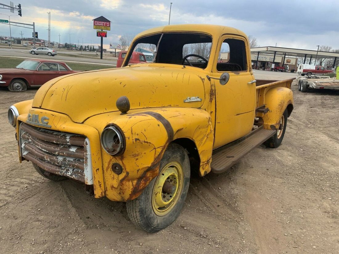 FOR SALE IS A 1950 GMC PICKUP;COMES FROM WESTERN NORTH DAKOTA;IT HAS FLOOR RUST;THE GLASS IS ALL OUT;THE MOTOR HAS NOT BE RUNNING IN YEARS;IT IS MISSING SOME PARTS; AROUND THE ENGINE;THIS WILL NEED RESTORATION;THERE IS SOME DENTS AND BRUISES;I CAN HELP ARRANGE REASONABLE SHIPPING'JEFF 218-464-2821Similar vehicles
