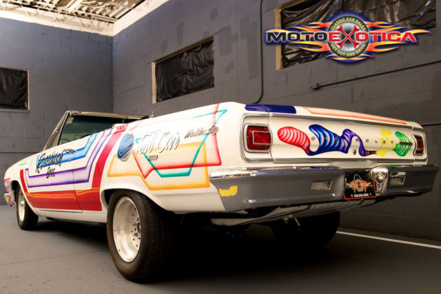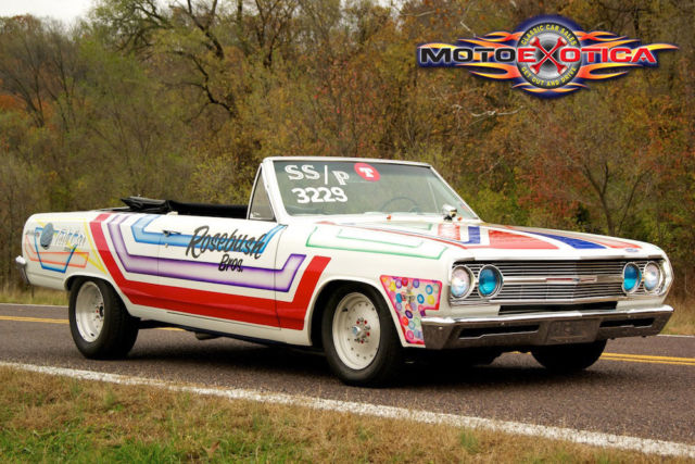 Featured in Chevy Power Magazine Period-correct 283ci V8, blueprinted and built Chevrolet small block engine Doug Nash 4-speed manual transmission Four-link racing rear suspension Originally built by the Rosebush BrothersMotoeXotica Classic Cars is pleased to present yet another beautiful classic Chevrolet, a 1965 Chevelle custom convertible that was built as a loving tribute by the legendary Rosebush brothers! It was a recent recipient of a meticulous nut & bolt restoration and is a show worthy investment . It is completely street legal with title in hand and can be driven to the track if you please. Finished in it’s correct white and multi stripe livery paint job, shows extremely well with only minor imperfections visible upon close inspection. Inside, the white with graphic interior mirrors the exterior to continue the theme.