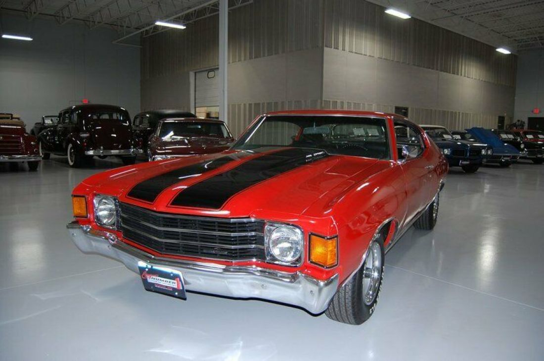 We can't all have #s matching Chevelle SS cars. But this bright red '72 Malibu Tribute with SS stripes, Cowl induction hood, and SS Rallye rims with raised letter radials is a great Chevy. With a 350 V-8 with performance upgraded carburetor, aluminum intake and headers, you have plenty of power to run down the road, and power steering and brakes makes for a smooth ride too. Black vinyl bench seat interior with black carpet makes for a nice interior especially paired with the classic bright red exterior and black striping. Aftermarket accessories such as tachometer, gauges and AM/FM stereo complete the package. The Chevelle/Malibu body style will always be a favorite with collectors. This 1972 Chevrolet Chevelle Malibu Tribute is a great muscle car at a great price and is available at Ellingson Motorcars in Rogers, Minnesota.