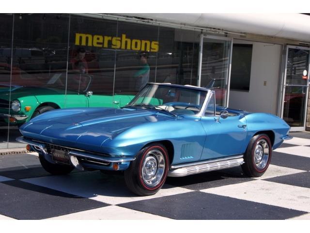 1967 Corvette Convertible – 327/350hp V8 with Matching Numbers, 4 Speed Manual Transmission and 3.36 Posi Rear. Code 976 Marina Blue Exterior with Code 450 White and Blue Interior and a White Soft Top. Features include Color-Matched Auxiliary Hard Top, Side Exhaust, Original AM-FM Radio and Rally Wheels wrapped in Redline Tires. The The entire driveline is original and the tank sticker is still with the car and is 100% readable. It’s an early 1967 built the first two weeks of production. Well-sorted out, a blast to drive and tons of curb appeal on a hard to find Marina Blue 350hp Roadster! Before arriving to the customer, this car will be treated to our predelivery service including steam cleaning the engine and undercarriage, inspecting and updating mechanicals as needed, and finishing with a complete detail. This in addition to our pre-delivery checklist assures your new investment arrives fully functional and ready to enjoy.Similar vehicles