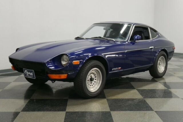We often get asked for advice on the best starter collectables; that is, cars that can be purchased for not a lot of money and enjoyed with a minimum of fussing. This 1974 Datsun 260Z certainly qualifies. With a smooth-running inline-six and a cosmetic freshening, it's a handsome car that delivers a vintage driving experience that's easy to use in today's traffic. If you're looking for a fun, sporty, unusual driver that will always get people talking, it's hard to... do better than this. The paint was refinished years ago in bright blue, which isn't the original color but compared to all the silver and black Z cars you see out there, it's a great combination that looks remarkably good on the curvaceous sheetmetal. While there are signs of age, it makes this the ideal car for a first-time buyer who isn't looking for a project. The purity of the original Z-car's shape is undeniably attractive, and with the front and rear bumpers removed, the classic long nose profile is more Jaguar E-Type than Datsun functional. Fit and finish are decent and the reputation that Japanese cars earned was based largely on cars like this that were worlds better than their domestic competition and it's noticeable today. The black vinyl interior has been freshened and remains in decent condition with plenty of life left in it. The seats show only moderate wear, with custom embroidery on the headrests and the foam underneath remains firm and comfortable. The dash pad is excellent and the carpets have been protected by heavy-duty rubber mats, so they're tidy, too. All the gauges are fully functional, including the auxiliary gauges on the top center of the dash, which are a styling cue that still in use on Z-cars today. A 4-speed manual transmission, along with the larger engine with more torque and softer suspension, were concessions to American tastes, but it also makes the car comfortable and a first-class long-distance cruiser. For the most part, this car doesn't deviate much from the original spec although it does have a newer AM/FM/CD stereo head unit in the center of the dash. Under the hatch, you get a good-sized trunk with nice carpets that haven't been backed by the sun, as well as a giant subwoofer. Datsun knew that the 260Z needed to be competitive, so the 2.6 liter inline-six is a gutsy powerplant that revs smoothly and delivers impressive torque. Thanks to nicely tuned twin side-draft carburetors, it starts and idles beautifully, and pulls through the gears with a musical tenor that you'll enjoy every time you fire it up. The engine bay is tidy and clean, showing signs of conscientious maintenance throughout its life and that awesome red valve cover to really make it spot. The racy air cleaner gives it a purposeful look and there aren't many aftermarket upgrades, suggesting that this car has always led an easy life. The 4-speed manual transmission slips through the gears almost telepathically, and suspension is supple yet athletic, showcasing the car's grand touring mission. It rolls on a set of aftermarket alloys wearing 205/70/14 blackwall radials that fill the fenders just right. The same things that made the original Z-car popular when it was new makes it a fabulous collector piece today: great performance, fun handling, and reliable mechanicals. Introduce yourself to the purity of driving that comes from a well-balanced chassis and an engine that can make the most of it. Call today!