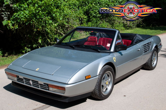 23,177 actual miles, sold exempt due to age Recent service One of 810 cabriolets made between 1985 and 1988 and one of 449 imported to the United States 3.2L Tipo F105C four-valve V-8 engine with dual exhausts Five-speed manual transmission Less than 100 produced in Argento Nurburgring (Nurburgring Silver) exterior, black power-folding roof and red interior with leather seats Air-conditioning Power steering, power brakes with anti-lock, power windows Clean Carfax supports current mileageAnother popular Italian stallion has pranced into MotoeXotica Classic Cars, this time in the form of a 1988 Ferrari Mondial Cabriolet offered in a rare but very handsome silver exterior with red interior color combo. It is claimed that the Mondial cabriolets are the only production vehicles manufactured to a four-seater, rear mid-engined, full-convertible design. This outstanding Ferrari is understood to have had 3 previous owner and was always garaged and well maintained and the current condition really proves that. The low mileage of 23,171 miles is understood to be actual and is backed up by a recent Carfax and service receipts. The car was recently serviced on 7/15 at Speedsportz in Tulsa Oklahoma which included a tune up and oil change. Carfax shows additional maintenance done by Ferrari of Fort Lauderdale in 2003, 2005, 2006 and by Ferrari of Atlanta in 2006, 2007 and 2010. Previous owner stated that belt service had been performed in the recent past, however no receipts in hand. Carfax further shows some inconsistent mileage entries in 1996 and 2003 from a emissions station and a service. All other entries are in line and consistent and likely represent clerical errors.