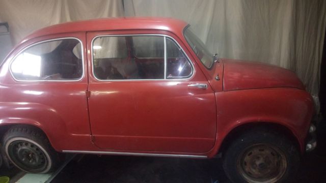 This a 1962 Fiat 600D that's being sold with no engine or transmission/transaxle. One of the last year's for the suicide doors. Although there is some rust it's still a very solid car. It's been repainted some years ago before I bought the car and there really isn't anymore rust or paint bubbles in the 17 years I've owned the car. The hood and rear deck lid has been replaced at some point. I've tried to take pictures of the worst of the rust and corrosion and will supply more if needed. I think the body isbetter than most original/unrestored 600s out there. This would be the perfect candidate for an engine swap. The floors have the most rust as it had rubber floor mats and those trap moisture like nothing else. The windshield has a few rock chips that can be filled and the drivers window is cracked but all other glass is in good condition. The car had the 4 wheel disc brake conversion done at some point. Two of the tires are blown out and all four rims are different. I'm no expert in these cars so I can't say if it's been modified any more than that. The guy I bought the car from got it from a shop in Tacoma called Fiat Guys so maybe some of you might remember seeing this car at that shop.Similar vehicles