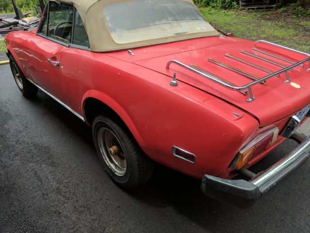 76 Fiat spider 1800 - ban find, was sitting for 25 years, needs restoration, clean undercarriag, Runs well, New fuel tank, New Carpet, new starter and timing belt, Overall its a very clean body and undercarriage, Wasundercoated well back in its day probably saved it,rust spot on the rear right quarter as seen in photo, left rear wheel has a couple of spots to patch, and one spot in the trunk that was cut out about the size of a half dollar, solid floor. Motor runs strong, smog pump was removed, Clutch works as does the Ebrake, No trunk key, opens with a screw driver, hood doesn't latch, latch needs to be straightened, It will need some brake work as there is no working brake petal believed to be an issue with the master cylinder, visually the lines look ok as the reservoirs are full, after a little work you can drive as you restore it, I've described it to the best of my ability, sold as is where is located in Guilford cu, 42k on the speedo, has a CT title, comes with a couple of repair books, car cover, carb rebuild kit etc. For mode info please see in perso, thanks for looking and happy ebayingSimilar vehicles