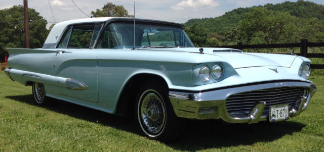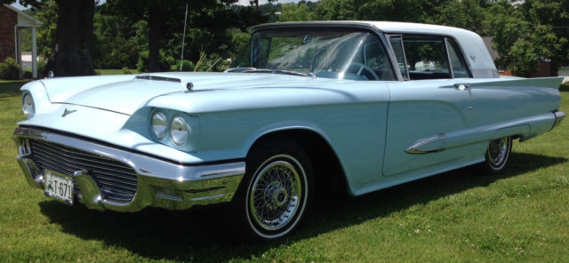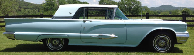 This is a beautiful 1959 Ford Thunderbird Hardtop. This is a very special car because it has the rare J-Code option. The J-code option adds a 430 C.I. engine with a 3-speed Cruise-O-Matic transmission and power brakes. The car also features power steering, power seats, and power windows. 1959 and 1960 were the only two years that the J-Code option was available. In 1959, only 3,154 out of 67,456 Thunderbirds were produced with the J-Code option. This car has had a complete restoration and has been painted its original color scheme of Diamond blue over Baltic blue, along with the matching two-tone interior. The engine has been professionally built with custom-made 0.030” over-bore pistons and has very few miles on it. This car runs and drives very smoothly. It has been registered on the T-Bird registry. There are extensive records on the car since it was bought new in Colorado. All parts and labor that were used to restore the car have receipts and are contained with the rest of the documentation in a portfolio. The asking price is $21,000. For any questions or additional information, please call 270-692-3910.
