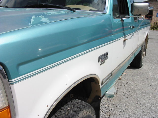 94 Ford F250XLT 4WD EXT Longbed 7.3 Powerstroke diesel turbo with a 5 speed tranny, I bought this gal in Denver Colorado and drove it back to pa last winter and got about 19mpg with no problems!!!