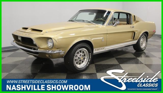 This car is very rare, very correct, and very well done. So be sure to check out the binder full of documentation that includes a very thorough professional appraisal report as well as the Marti Report, the original invoice, the factory build sheet, restoration photos, and receipts for those details. Sunlit Gold is not only a beautiful color, it's one you don't see too often and is the factory correct code 3073-A color for this car. The fenders, quarters, and floor pans are all original and the paintjob is a very well executed BC/CC with restoration photos documenting the job nicely. Correct Shelby GT500 badging starts up front with Shelby in letters. Fog lights are set in the grill and all the chrome trim as well as the bumper shines bright. The hood has a big double scoop to gather up air for the beast within, is held down with twisting hood pins, and has vents to let the hot air out. There is a Shelby Cobra on the front fender and GT500 stripes in white along the rockers. The view from the rear is unique Shelby with six chamber sequential taillights on each side of a Cobra gas cap with Shelby in script on the trunk lid and dual chrome exhaust tips peeking out from under the bumper. The car sits on the dealer optional 10 spoke wheels with Cobra centers and fresh Cooper Cobra tires. Open the door and you will find the code 6F Saddle Décor group interior that compliments the Sunlit Gold nicely. The door panel sets the theme in a two-tone treatment with a woodgrain panel trimmed in chrome piping and ribbed chrome dresses out the bottom. The original and correct two-spoke steering wheel with a Shelby center is mounted on a swing-away column. The dash is stock and super clean with a wood grain upper with all the chrome trim and controls looking good and shining bright. Ventilation controls include those for the factory optional "Selectaire" air conditioning which was only available in conjunction with the automatic transmission. So, the T-handle for that trans rises out of a beautiful wood grain center console that includes Stewart Warner gauges for oil pressure and charging amperage at the front with a nice Cobra armrest on top of the storage compartment. The seats are freshly recovered and the factory roll bar sports the original, and matching, shoulder harnesses. Open the hood and you will find one of those precious 428 Cobra Jet engines nestled down in an engine bay as nicely restored and detailed out as the outside of the car. It starts with the oval Cobra air cleaner sitting on top of the C8ZF Holley 4-barrel carburetor with its tag still in place. A C7AE cast iron intake sends the mixture to a date correct engine along with Cobra LeMans crinkle finish finned valve covers that help keep the oil cool. Original exhaust manifolds get the spent gasses out and power flows back through that C6 automatic trans to the traction-lok rear end. The chassis is nicely painted and detailed out too and all the suspension components are new. Power steering and power front disc brakes assure that you can maneuver and stop this car easily and effectively and the rubber meets the road through 325/60R15s mounted on those gorgeous 10-spoke wheels. Very desirable and nicely restored with extensive documentation. This one could be yours. Come on down and check it out.Similar vehicles