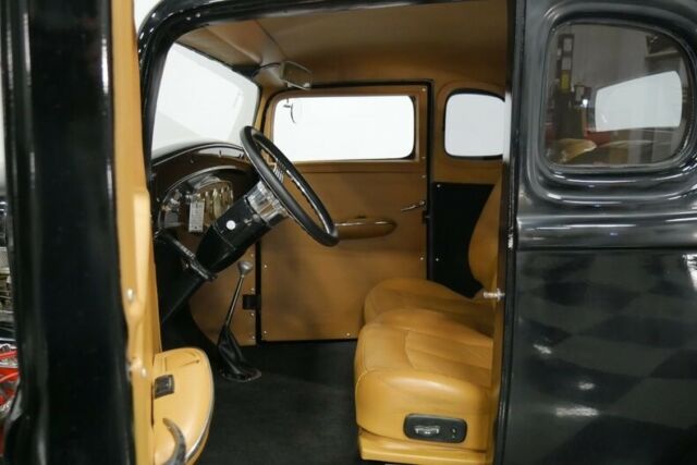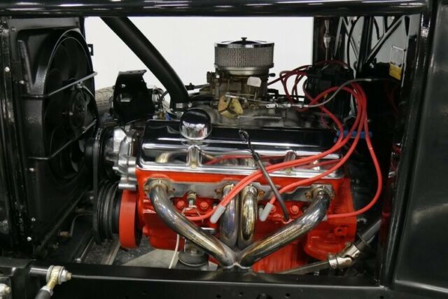 The 1932 Ford is THE hot rod. There are others, but most hot rods today can trace their histories back to the '32 Ford, and they're as popular today as they ever were. This striking black 5-Window Ford has the right stance, the right profile, and the right hardware to make it look traditional, but all the creature comforts to which we've become accustomed, so it's also easy to enjoy. The body is by fiberglass reinforced with... steel, and after looking at this 5-Window (and at its reasonable price point) you'll realize that glass is the way to go. One, it doesn't rust or get dented, so no worries in the future if you drive it. Two, it finishes very well and the results show everywhere you look on this car. And three, it's obviously newer, so you don't have to deal with a creaky old Ford body and instead enjoy a rod that's tight and quiet on the inside. Black is a cool choice simply because it will always look great, and its simplicity looks great without the need for graphics or pinstripes. It has a minimalist vibe that's perfect for the '32 5-window, especially in streetrod form, and we guarantee that it'll stand out at the next cruise night. It's far from perfect, but this rod was never meant to hide in garages, only to be then shown twice year, so the warmed over look is typical of a vehicle that's been driven and enjoyed since it was built. They skipped the hood side panels but the '32 Ford grille shell is painted to match the body and features a polished insert, plus you get a set of King-Bee-style headlights perched down low on the front suspension. It's got the hotrod look outside but inside it's almost a luxury car. Nicely finished in low-key tan vinyl, the wide buckets were swapped in from a late model vehicle and are comfortable enough even for six-footers, which wasn't the case with a stock '32. A tilt column surely helps, and given the quality of the surroundings, it's easy to imagine taking this one cross-country on the Power Tour. Amenities are sparse but do include power windows and seats, and those plush seating surfaces are all day comfortable. Nicely fitted black carpets and custom tan door panels give it a very polished look inside and cream-faced gauges inside the machine-turned bezel are a great look on the black dash. There's also a three-spoke banjo-style steering wheel with a leather-wrapped rim, and the Lokar shifter that manages the TH400 automatic transmission is a short reach away for the driver. There's also a bit of leftover room in the trunk around the custom enclosure for the battery, gas tank, and side panels, all of which have been finished nicely with fresh wood. A 350 cubic inch Chevy V8 motor with 4-bolt mains provides reliable power for this Ford. Fed by a Quadrajet 4-barrel carburetor on a performance intake and dressed in plenty of chrome, it certainly has the right look. The brightly detailed engine bay is kind of minimalist, but that's the whole point of a Deuce, isn't it? Block-hugging headers feed a custom Flowmaster dual exhaust system with the right sound and there's a big radiator up front that's cooled by an electric fan. The chassis is neatly detailed and professionally engineered, so it rides great and tracks straight. A TH400 3-speed automatic transmission is linked to a custom 10-bolt rear end which hangs on ladder bars with coil-over shocks. Up front you get more coilovers, there are disc brake all around, and the traditional Cragar SS mag wheels carry 255/60/15 radials to finish the killer look. With the right look, this Ford brings a slightly different twist to the familiar '32 Ford hotrod. It's not subtle, but it is tasteful and comfortable and there's a lot to be said for that. Call today!
