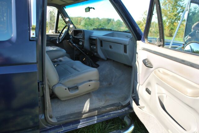 Complete interior swap from a '97 F-350. Completely professionallyrecovered seats in grey Leather. Front and rear seats. Door cards anddash also swapped from the '97. The interior was fully sound proofed at the time of the interior conversion.