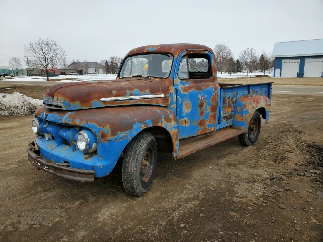 Cool looking blue patina body-1951 ford f2 pickup truck. It has the flathead v8 with the 4 speed manual transmission. This truck rolls and steers but does not run. It has been sitting for many years. The cab is very solid and so are the running Boards. There is rust in the lower part of the Box sides. This will be a great truck to restore or built a street rod with it. I do have a clear title for it and I can help with a aranging shipping. I reserve the right to end the auction early for local sale. If you have any questions or for a shipping quote call me at 218-234-186sixSimilar vehicles