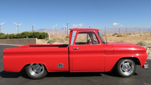 1966 GMC 1000 ½ ton Shortbed Fleetside! Factory built in Fremont California, body off restoration just completed! Rebuilt 350 engine and turbo 350 automatic transmission, only test miles put on. HEI ignition system. Edelbrock carburetor and Holley projection intake. Flowmaster dual exhaust with factory heat treated manifolds. New charging system, new battery, alternator, starter and cables. New radiator and hoses. New custom interior, Pro Car seats, custom console and B and M shifter. Billet gauge pack and retro aux ipod radio. Very nice body 100 percent rust free body and panels. New viper red paint job, all new seal, chrome redone, new handle, mirror, hidden hinges, bed kit with rear mounted fuel tank. New windshield and lots more. Lowered 4 inches in the front and rear. New aluminum Chevy rally 18in. wheels. New tires, front 215/55/18 rear 255/55/18. All new bakes. All gauges, wipers, heater and lights work. No leaks, smoke or noises. Runs and drives excellent! Original vin plate matches clean California title. Oversea buyers welcome! stock # 691A. Call or email today!Similar vehicles