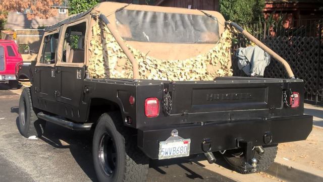 This truck looks like a real military H1 Hummer. The body, made by Bummer, sits on a 3/4 ton Chevy Pick-up. It has a 350 motor, dual exhaust, and a new transmission. New flat black paint. Two different canvas tops... full wagon or half cab or 100% convertible and looks bad ass! Seats 8 people with seat belts. Doors come completely off or you can roll down or remove windows completely. 1,000 watt stereo system with 12 cd changer holder and 4 headsets. Tv monitors in back of driver's and passenger seat head rests... and a third screen up front... with additional 4th screen in the rear view mirror.. which is also linked to camera for reverse/back-up (because truck sits high up). Fire extinguisher, separate yellow and red flashing warning lights mounted, entire truck lights up green underneath the frame (when you want to be flashy at night). 4-wheel drive. Tires in good condition. No oil leaks, parts are easy to get (it's a Chevy). Looks real, sounds mean, and turns heads. Love it, hate to see it go, but I have 3 kids in college! Willing to ship if buyer pays.Similar vehicles