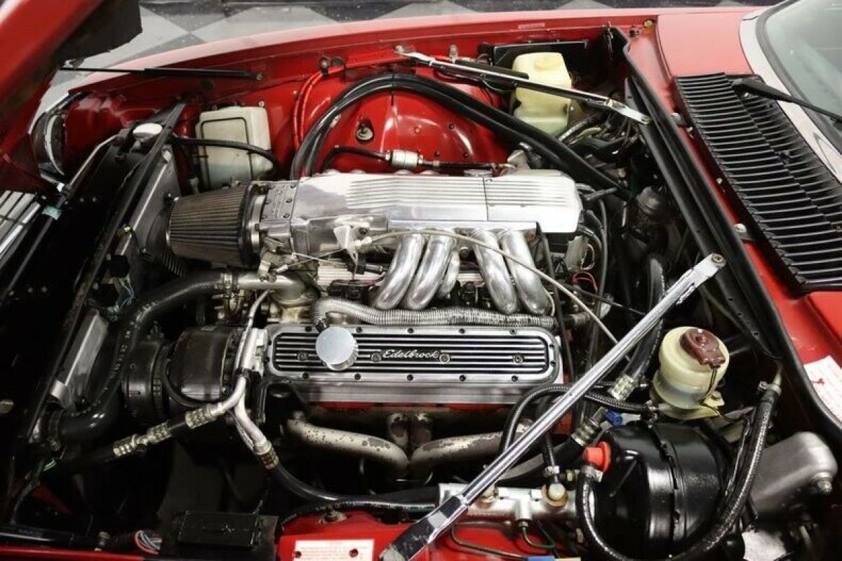 The 5.3 liter V12 is gone, replaced by an even more powerful and efficient 5.7L TPI Chevrolet V8. There's now plenty of room for service in there and the reliability of the Chevy can't be beat. They used block-hugging headers and a true dual exhaust for an awesome soundtrack, so it sounds more like a Camaro, and with a fuel-injected V8 under the hood it can hang with one out on the street as well. A polished intake manifold, Edelbrock valve covers, HEI ignition, and an aluminum radiator with dual electric fans all help with reliability. The swap looks quite professional and the car runs and drives like it should. The suspension is still supple, the power 4-wheel disc brakes are still powerful, and it's a superlative highway cruiser with a wonderful blend of sport and comfort with a tight power steering system. Handsome late-model wheels are swapped in from a modern Jag and carry 245/40/18 performance radials for an aggressive look.