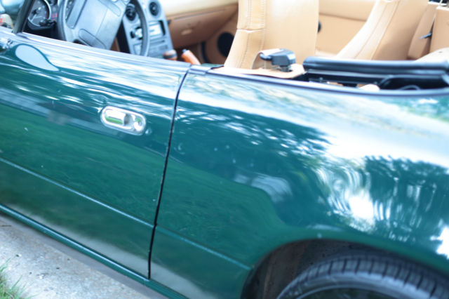 RARE 1991 Mazda Miata MX-5 Special Edition. Less than 48k miles! This is the first special edition Miata in the original British Racing Green, and it set the trend of what would be standard features for nearly every special Miata to come. It has a wood Nardi shifter and hand brake, stainless sills, AC, CD stereo, cruise control, and headrest speakers. The interior is tan leather and it has the tan tonneau cover. The soft top is black. There were only 3,997 of these made. This one starts and runs well, and all instrumentation (including the headrest speakers) works. The AC blows cold. Tires, including donut spare, are in great shape (not much wear on tires). Per our mechanic who checked this out, it drives solidly with no rattles. This is a very sporty and fun car to drive!
