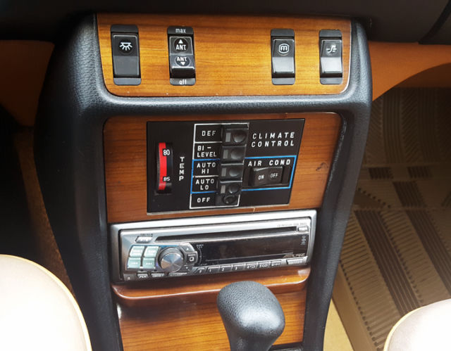 The chrome is still shiny. It has original window glass and the window seals are good.We tried to take a picture underneath which didn't come out well - but it leaks almost no oil. The original owner is in Petaluma. The car currentlylives in the East San Francisco Bay area. The car has not been exposed to any road salt to my knowledge.It is not believed that anyone has smoked in it. The A.C. was just charged and it works well. All original glass, good rubber window seals. Power windows working. I just had the brake booster replaced. New OEM carpeted floor mats for it. The sunroof works.