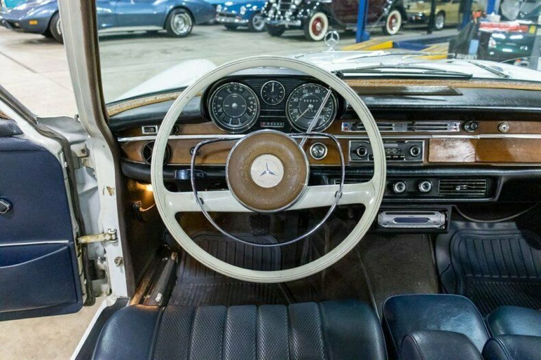 GR Auto Gallery is pleased to offer this 1966 Mercedes-Benz 250S for your consideration. As the name shows, this elegant classic Benz is powered by a 2.5L inline-6 motor which is mated to an automatic transmission. With the turn of a key, the motor turns over and starts right up.The exterior of this classic Mercedes is finished in a nice white finish which is nicely accented by chrome trim and chrome/white wheels. Complementing the exterior is a blue leather interior that features a black dashboard with classy wood accents. Sitting inside this classic 250S will place you at the top of European luxury from the 60s. Another interior feature is the aftermarket Sony radio which is hooked up to an aftermarket audio system. The original Becker Europa radio is still in its place, though it appears to not be connected.