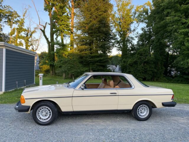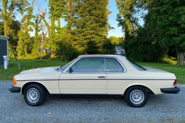 1981 Mercedes-Benz 280CE with19k miles finished in Light Ivory over Palomino MB-Tex and powered by a 2.8-liter inline-six paired with a four-speed automatic transmission. 14″ Bundt wheels, quad headlights, a sunroof, air conditioning, power windows, power locks, and a Becker AM/FM/cassette stereo.The cabin features front bucket seats and a rear bench trimmed in Palomino MB-Tex upholstery with a matching dashboard and door panels. Wood trim adorns the dashboard and center console, and equipment includes air conditioning, power windows, power locks, and a Becker AM/FM/cassette stereo. A crack is present on the driver-side seatbelt tower. The driver-side window regulator was replaced in September 2021.
