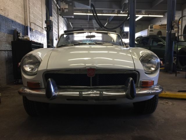 Outstanding one family owned 1974 MGB Rare chrome bumper Roadster. This is an interesting car because it is a very early model-year build so it does not have those big rubber overriders and does not have the rubber bumpers which came out later in the year. This car was built in October of 1973 and build as a US destined car. It was delivered new into Connecticut and enjoyed for many years by the owner. Eventually the car was showing its age and he had the car repainted and color changed the car from red to white. The quality of work was good and the car was for the most part rust free when done.The exterior has all original sheet metal with absolutely no bondo or rust repair. The rockers and lower fenders are all solid. The base of the rear window above the trunk is also solid steel original. The lower front passenger side quarter has bubbles in the paint indicating the beginnings of rust underneath but is still solid. You can see in the pictures. Aside from this area, here are no more rust areas on the sheet metal of the car.