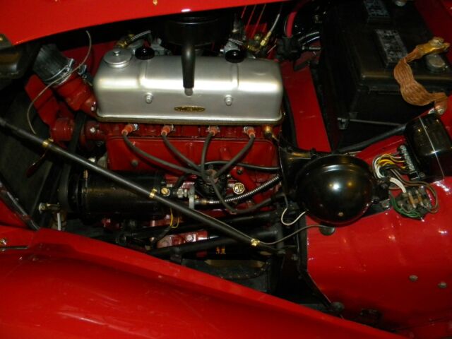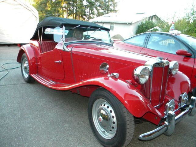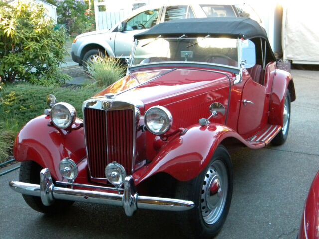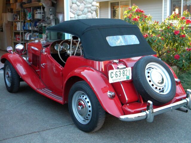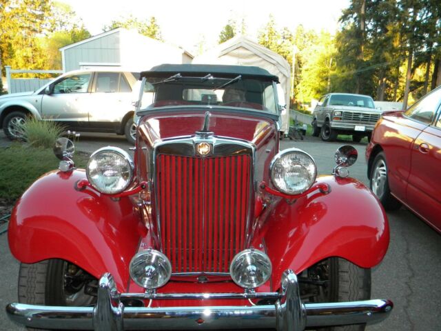Beautiful frame off restoration completed in 2010 Fitted with original numbers matching engine, 4-speed transmission, Walnut dash, complete wet weather gear, radial tires, fog lights and more! This 1953 MG TD Roadster is a great road car with only 100 miles since the restoration! This beautiful 1953 MG TD roadster comes finished in MG British Racing Red with red leather interior and matching Black Stayfast cloth top and Tonneau cover. its original, numbers matching 1250cc XPAG straight 4-cylinder engine with twin SU carburetors producing a modest 57 horsepower at 5200 rpm. Features include 4-speed manual transmission, Upgraded MGA rear end gears for road comfort, gorgeous burled walnut dash, front fog lamps with badge bar, fender-mounted rear-view mirrors, and correct Jaeger gauges, Lucas amp meter, Plexiglas wind wings, electric wipers, 15 inch disc wheels with polished chrome center caps, 165R15 radial tires, red seat belts, leather shift & e-brake boots, and a complete canvass top set with side curtains. It was repainted at the completion of restoration in July 2010. The entire chassis was disassembled and fully rebuilt, along with the complete drive-train. This included the engine, the entire brake system, suspension & steering system, brass fuel lines with new SU fuel pump, complete wiring harness from front to back, all new SS exhaust, brand new tires, and more. Nothing on this car has been altered from original right down to the correct generator charging system, MG intake and exhaust manifolds. All body and engine tags are clearly present. This MG TD has been only used for parades and car shows in which it always won first in class. Included with the car is an owners manual, storage car cover, and complete photo documentation of the restoration. It is ready to be enjoyed in confidence immediately! Please feel free to call with any questions.