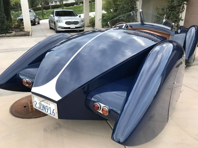 The body was hand crafted from a wood buck and the form captured in a fiberglass mold. From these molds, all parts on car were casted with woven fiberglass and polyester resin. The car was made to allow for complete disassembly. All four fenders are easily removable from the main body.