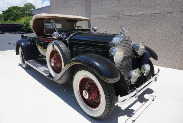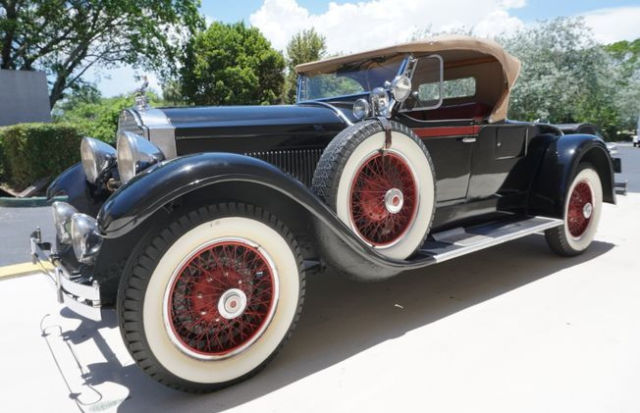 This 1929 Packard Eight Roadster is finished in black with red trim and a red leather Interior.Beautifully restored to a high standard. Runs and drives derfict. Manual transmission.