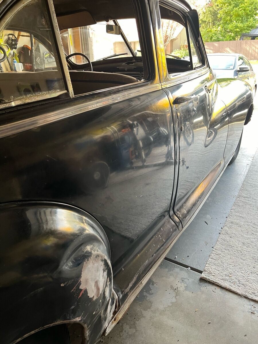 1942 Packard Clipper, straight 8 backed by manual transmission. NO LEAKS! She is 6 volt, w/a new battery and electric fuel pump. Wonderfully original and complete, she is missing: front bumperette, dash ashtray and lighter, passenger rear door handle and locking knob, hubcaps. She has all chrome pieces and glass. She has a wonderful patina and really could be campaigned "as is". Both rear fenders need a body man.(Pictured)She does have some rust, rust-thru below the headlights and passenger side frt floorboard(Pictured). She will definitely need new tires (tubes holding air) wide-walls or Military tires. She comes with original 1942 Shop Manual, a pair of legal YOM 1942 Idaho license plates, and a box set of Glen Miller Big Band to play on the garage stereo (she loves swing!)