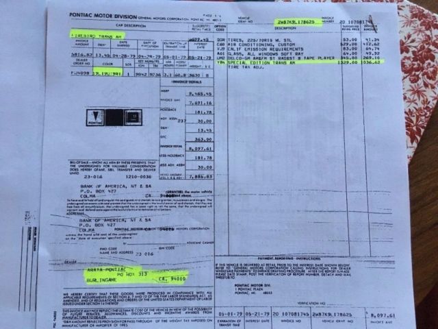 1979 Pontiac Trans Am -REAL BANDIT Y84 SPECIAL EDITION PHS DOCUMENTS CALIFORNIA