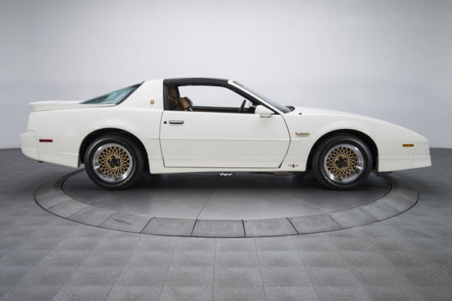 Fully optioned and incredibly preserved this pristine Pace Car is 1 of only 1555 TTAs produced. And whether you're looking for a unique collector car that has some serious upside or just a choice ride to cruise to Radwood it's your chance to become the king of cool! Capitalizing on two decades of excellent sales and record promotion of its reinvigorated branding Pontiac kicked off the Trans Am's 20th model year with a replica of their coveted Indianapolis 500 Pace Car. In addition to functional... and by Pontiac standards conservative aesthetics the car featured a bolder version of Buick's buff turbocharged 3800 V6. And like its GNX predecessor the Turbo Trans Am punched way above its class clocking 60 MPH in 4.6 seconds on the way to an artificially limited 162 MPH top speed. Pop the hood and you'll find GM's venerable 3800 V6 that thanks to a Garret turbo twists a seriously underrated 250 horsepower into a seriously underrated 340 lb./ft. of torque. Behind that mill a trusty Turbo-Hydramatic 200 4-speed spins a requisite 10-bolt axle. Under that first-class drivetrain a familiar WS6 Suspension makes excellent use of a standard 1LE Brake Package. And at the corners of the car attractive GTA alloys spin 245/50ZR16 Goodyear Eagle ZR50s. Between the doors optional leather buckets front GTA and TTA-exclusive split rear seats. Opposite those seats delightfully '80s gauges complete with a small boost inset inhabit a blocky dash that's free of warps and cracks. Below that dash a factory console frames a short T-handle shifter. And in front of the driver a leather-wrapped Sport Steering Wheel cages redundant audio controls. If your definition of classic Detroit muscle is a highly accurate beautifully presented meticulously crafted Pontiac it's your lucky day! Call click or visit for more information.