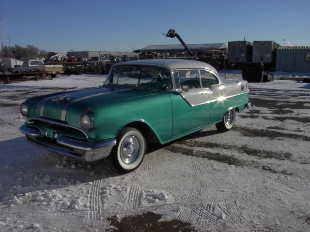 Here is your chance to own a 1955 Pontiac Chieftain 2 doorHardtop with a V8 and a automatic.This car presents a unique opportunity. 1955 to 1957 Chevys are gorgeous cars, but there are so many after awhileyou get tired of looking at them. In 1955 GM shared the main body with Pontiac,Essentially if you removed thefront and the back of the car, its the same as a 1955 Chevrolet. So if you love 1955 to 1957 Chevysbut you wanted something unique, something where there aren't thousands atevery car show you go to,this is your car. Plus thisisn't the base model, Chevrolet offered 150's, 210's, delray's, etc, well Pontiac did the same thing. This is the deluxe model,essentially the Belair of Pontiacs, so this is the one to own.On top of that, this car is the perfect color. How many 50's cars are painted viper red,2008corvette blue, don't get me wrong, they are probably gorgeous colors,but alot of those newer colors just don't look right on 50's cars.Not only is this car painted agorgeous colorbut itfits the 50's eraperfectly. All of the paint and chrome/stainless are top notch.Just look at the pictures, it just sparkles fromeveryangle. The interior looks absolutely brand new. Thestainlessand chrome trim sparkle so much they are hard to look at.And the interior is stock/50's era perfect. That just kills me when you see a 50's car with Escaladebucket seats. The motor isthe stock v8 with a automatic. It runs down the road like your driving a new one. stops great, steers great, just a great car.If you look underneath it, tri fivechevys are notorious for inner rocker problems, body mount problems, floor problems. Look at the bottom of this car ! It is super nice.This car was definitely in a garage most of its life. Possibly even the family car that only was driven on sunday to go to Church.This car is the trifecta, the triple double of basketball, the winning ticket to the lottery. I mean how often do you find a car with the great looks of a55-57 Chevrolet, but is more unique then one, that sparkles every which angle you look atit, with a perfect interior,with a v8 (not a 6 cylinder), that cruises down the road like a new car, for $26,000 ! Not often. You should buy this car before somebody else does !