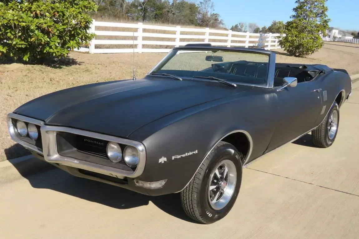 This classic Pontiac is up for auction …...........… If you're looking for a 68' firebird to drive for years to come here you go..........Have to love the color combo on this classic firebird ...........The paint is mat black..........The interior is in good overall shape as shown in pictures ......... it needs a new convertible top .............The engine compartment shows clean ........The 400 V8 engine runs and drives nicely.................This firebird has an automatic transmission that shifts excellent thru all gears . ............. Firebird rides on a new matching set of tires mounted on a set of factory rims ............ Has a dual exhaust system that sounds really nice ....... Undercarriage is solid as shown in pictures.......In summary this classic firebird is a nice investment as it's only going up in value...... Drive and enjoy it as is or take it to the next level........ Can't go wrong with this car as it's a true first generation 68 firebird convertible and it's ready to drive for years to come..........