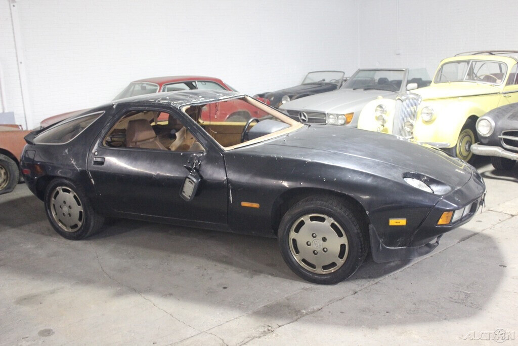 A 1979 Porsche 928 Euro Coupe. A desirable black with a tan leather interior. 5 speed manual transmission. 113,000 km (70K miles) The car was sitting in storage many years. Paint is original. An excellent and straight body but there are some dents mainly on the roof, and some by the headlight and the passenger door as you can see in the pictures. Broken windshield and passenger door glass. The interior is all original and is all there but showing its age. Passenger side door panel is off, but it comes with it. Mechanically the car does not run but the engine turns over freely. Stainless steel exhaust. Comes with clean and clear title. A rare and excellent original car needin