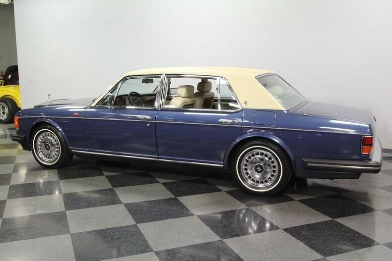 No matter if you're among high society or casual enthusiasts, everyone notices when a Rolls-Royce arrives. So when a 1991 Rolls-Royce Silver Spur II has such low mileage and runs so smooth, you know this is a wonderful opportunity at opulence on wheels.Blue is a standout color, but a Rolls will always do it with sophistication. After all, a car brand preferred by royalty looks quite nice in a royal-like hue. This example has only averaged about 1,050 miles annually, and it has the proper look of well-kept respect. The full package includes a cream-colored vinyl roof with matching full-length pinstripe give this the high-class look you demand from a sedan like this. The Rolls-Royce's careful dedication to craftsmanship is seen from every angle with a sedan that continues to fit together beautifully. The doors open and close with a precision that has to be experienced to be believed. And the panel alignment is the result of when building a car is a hand-crafted individual experience. In fact, because owning a Rolls is all about uniqueness, you may pick up on some of this sedan's tasteful upgrades. The wheels are mirror-like 16-inch units from later in the series, and you have the sleek appeal of European-style flush-fitting headlights.