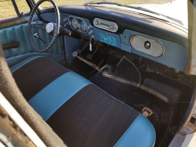 1963 Studebaker Champ 8E-T4, 289 V8 engine (runs perfect), manual transmission on the floor, starts and runs great every time, originally equipt with air conditioning (compressor is missing), sliding rear glass, all original emblems and badging, original over sized bed, custom paint job, very solid survivor truck.Call or text me with any questions479-966-0450Designed at a time when Studebaker's truck line had not seen major upgrading in over 10 years, the company, which had endured years of declining sales, was forced to use a number of existing components. An entirely new cab was out of the question because of cost considerations, but the newLarkcompact car's body proved to be just the right size and shape to suit the purpose. The engineering staff took a four-door sedan, cut it in half behind the front doors and modified the front half slightly to fit the truck chassis. The only new sheetmetal stamping that was required was the back wall of the new cab.