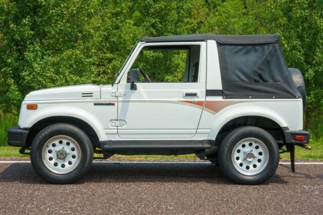 Under the hood is a 1.3L SOHC four-cylinder engine (code G13BA) with a carburetor. Backing this engine is a five-speed manual transmission. While not a drag racer, this Samurai was highly valued for its light weight and nimble handling.
