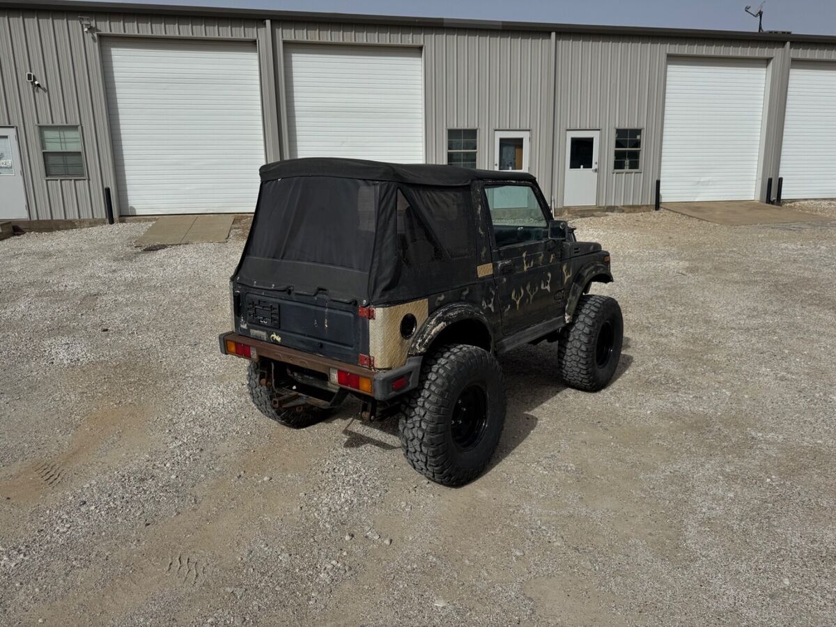 Selling my 1987 Suzuki Samurai. I had purchased this to turn into my hunting buggy down here in Texas, but after not having any extra time this past year, I'm wanting to move on from it. It has a blue bonded Texas title in my name.Here is a little run down on what it has:-1.6 16 valve MFI engine swap out of a Suzuki Sidekick.-New timing belt/water pump.-New thermostat and thermostat gaskets.-GM alternator conversion.-Optima Battery.-Trail Gear optima battery box.-Custom front bumper with wired and functioning turn/illumination lights.-Grill mounted LED light with dash mounted switch.-Hood mounted high lift jack.-Spring over lift with shackles (around 5 inches of lift).-33x12.50 BFG Mud Terrain tires.-15x8 steel wheels.-2" wheel spacers all the way around.-Extended differential, transfer case and transmission breathers.-New Dodge Caravan seats, these fold down flat to the front to gain access to the bed area.-Replaced top with newer but used piece.-Replaced clutch with a Centerforce Dual Friction.-Replaced flywheel.-Aluminum radiator.-Upgraded LED headlights.-Silicone hoses.-Trail Gear high steer.-As far as I know, it has stock gearing.Samurai needs some work before being turned into a daily driver, the large spring shackles make for a stiff ride along with an increased castor angle. I have not gone through all the night time and safety lights since I never anticipated to use this on the road.The good:-Starts up everytime.-Has a lot of good parts.-Rust is minimal (mainly in the passenger area floor board), central Texas cars don't see a lot of rot.-Runs, stops and goes.-No significant drivetrain noises, everything works as it should.The bad:-Brakes work fine, but I would do a 4 wheel brake service, the front rotors have some uneven wear on them.-Recommended to replace the IAC valve, this is the cold start valve that is known to give these 16 valve engines a high initial cold start. Once it warms up, it is fine.-I would swap to stainless steel extended brake lines.-Broken bolt on one of the transfer case mounts.-Rear wheel well tubs are hammered out in the bed area, my guess was for someone to fit something larger in the back.I have described this vehicle to the best of my knowledge, this is almost a 40 year old vehicle. If you have any questions, please do not hesitate to message me and I will answer as best as I can in a timely manner.