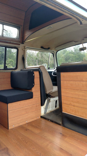 This is a real attention grabber and would be great for travelling or for advertisement for your business. This gets all the attention on the street and at shows, much more than the old Camaros and BelAirs! lots of room for logos on the side and roof. Also super roomy inside and you can easily stand, unlike the Westfalia camper you don’t have to pop the top up and down every time you stop. The undercarriage and wheel wells are super solid as you would expect from a California Volkswagen. It does have a crease on the rear of the siding door and some on the engine hatch. some light rust on the front floors (See pics) and a little bit of rust under the windshield and behind the sliding door. VERY MINIMAL!! It is the 1971 model so it has the classic upright engine but the comfort of Power Disc Brakes up front so it is much safer than the early models. All interior was done last month using the original templates to spruce up the old wood grain. New Pergo hardwood flooring looks killer! New White Letter tires give it a classic 70's look. Uncle Ricco Special! This is a great looking bus that gets thumbs up everywhere you go with it!