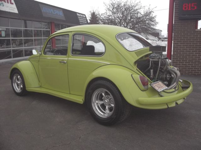 This sweet bug started out as a completely original and rust free car that was repainted about 10 years ago in Sublime Green which really pops. In 2012 the previous owner contracted Paradise Motorsports (formerly known as VW Paradise) to build a complete performance driveline. The engine is a high performance 2275cc engine with wedge ported heads that is putting 230 horsepower to the rear wheels with 7 pounds of boost from the T3 turbo. It is fed via a 600cfm Holley 4 barrel carb, the spark is controlled by a Flame Thrower ignition and it sounds just plain nasty ripping through its performance headers and exhaust. The power is put to the ground with a performance 4 speed manual tranny and performance clutch. The stance is wicked with the drop spindles, polished American Racing rims and massive 295/50R15’s on the rear. It has also been upgraded to a 4 wheel disc brake system to control all of the power. The interior shows like new with its front racing seats, new rear seat, door panels, headliner and carpeting. It has an Autometer Monster tach with shift light, VDO oil pressure and boost gauges as well a GT Grant steering wheel. It also has a brand new Alpine CDE-154BT stereo with an Alpine KTP-445A amp and Rockford Fosgate Speakers. There are 6x9’s in enclosures mounted under the front seats and 6.5’s in a custom rear package tray. It is a Bluetooth unit that offers direct control of your i-Phone or i-Pod and sounds amazing. All said and done in excess of $25,000 was spent to make this car what it is and that did not include the cost of the original car. We have priced this beauty aggressively so if you like what you see you better hit the BUY IT NOW button before it’s too late!